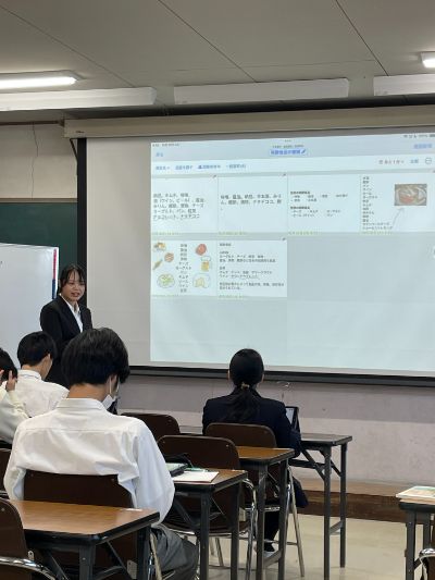 食品製造は、発酵食品についての学習で、タブレットを用いて調べた内容を共有するなど、ICT機器を活用した生徒参加型の授業でした。