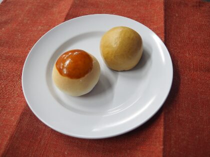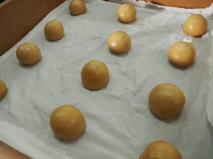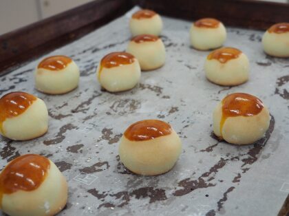 今回教えていただいたのは、栗饅頭と利休饅頭で、技術が必要な包餡もていねいに指導していただき、うまく包むことができました。