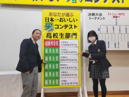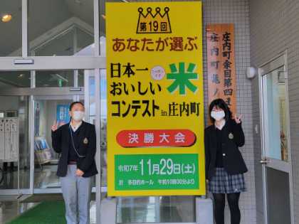 11月29日に山形県庄内町で開催された決勝大会には、作物専攻代表で2名の生徒が参加し、決勝審査員による食味官能検査を見守り、出場した他の高校生との交流会にも参加しました。