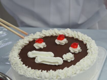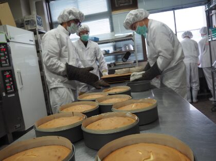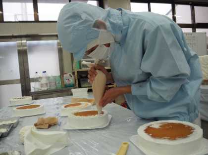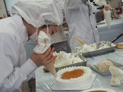 50年以上続く、恒例のクリスマスケーキ製作実習を12月15日(月)から18日(木)に行いました。3年生48名が、4日間で480個のケーキを製作しました。