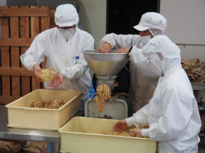 のうえんか 2年生農芸化学科では、1月から3月にかけて、みその製造方法を学習します。みそは発酵食品で、米麹の製造では麹菌の働きについて学び、発酵の仕組みを学習できる伝統食品になります。