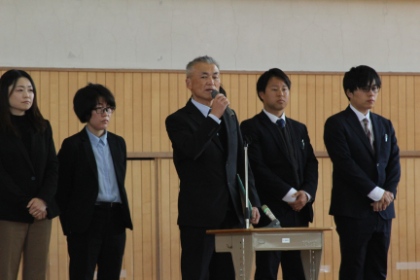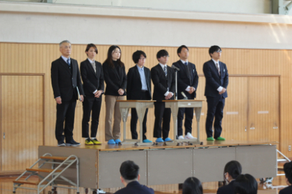 また、新たに多くの先生方をお迎えして着任式を行いました。近本副校長先生より代表挨拶をいただきました。