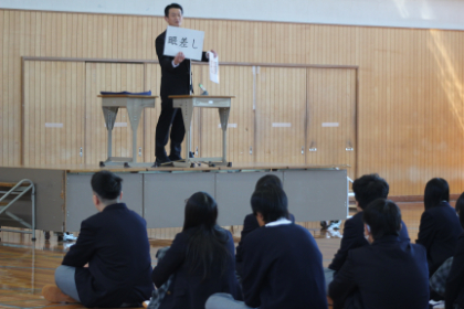 始業式では、校長先生が「節目」「笑顔」「眼差し」をキーワードに話をされました。最後に本校の校是でもある「探真究理」についても触れられ、自分で見て、自分で感じて、自分の頭で考え、自分の言葉で語る。誰かの答えをそのまま使うのではなく、自分なりの答えを、自分で確かめに行き、考え続けることの大切さと、積み重ねについて話をいただきました。