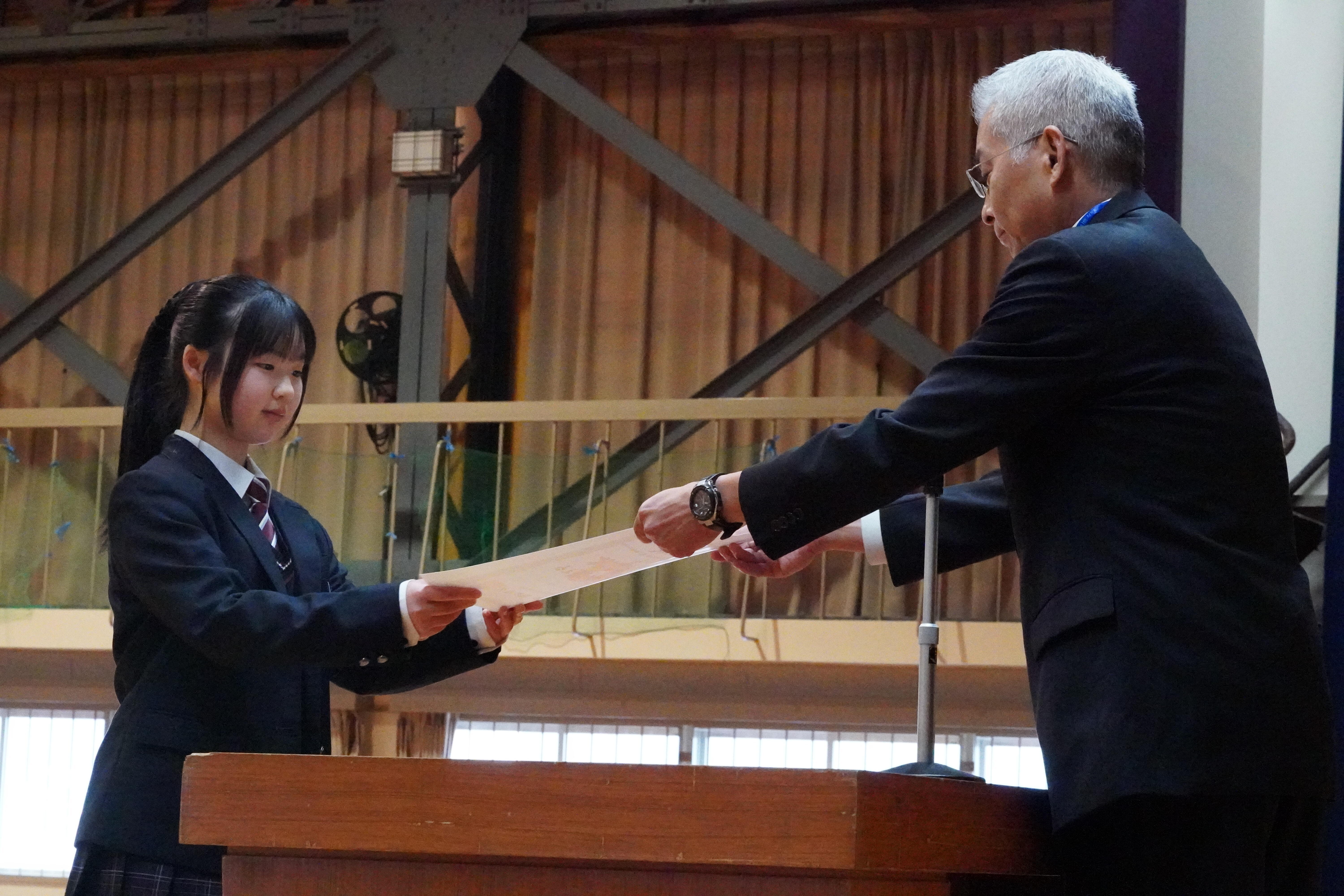 始業式後には伝達表彰があり、卓球部が冬季休業中に行われた大会での表彰式が行われました。