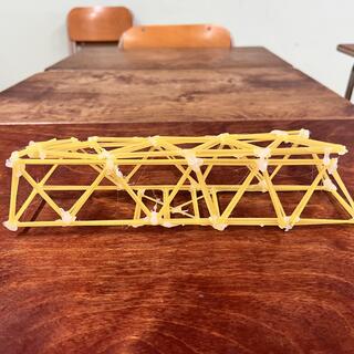 10月25日(土)に行われました、京都Scienceコミュニティ企画の「パスタブリッジコンテスト」に参加しました。本校からは、科学部2名と1年3組の生徒3名の2チームが参加しました。京都府の高校だけでなく、附属中学校や他府県の高等学校などを含め、64チームが参加し、パスタを使って橋をつくり、その橋がどれだけの重りを耐えることができるかを競いました。
