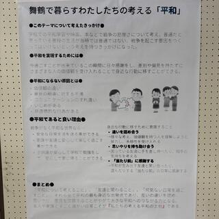 東舞鶴高校は、7月に引き揚げ記念館で開催された「平和未来ワークショップ〜Peace Boat100〜」に参加した生徒がこのワークショップを受けて考えた自分たち高校生にできる平和についてポスターを作成し、発表を行いました。