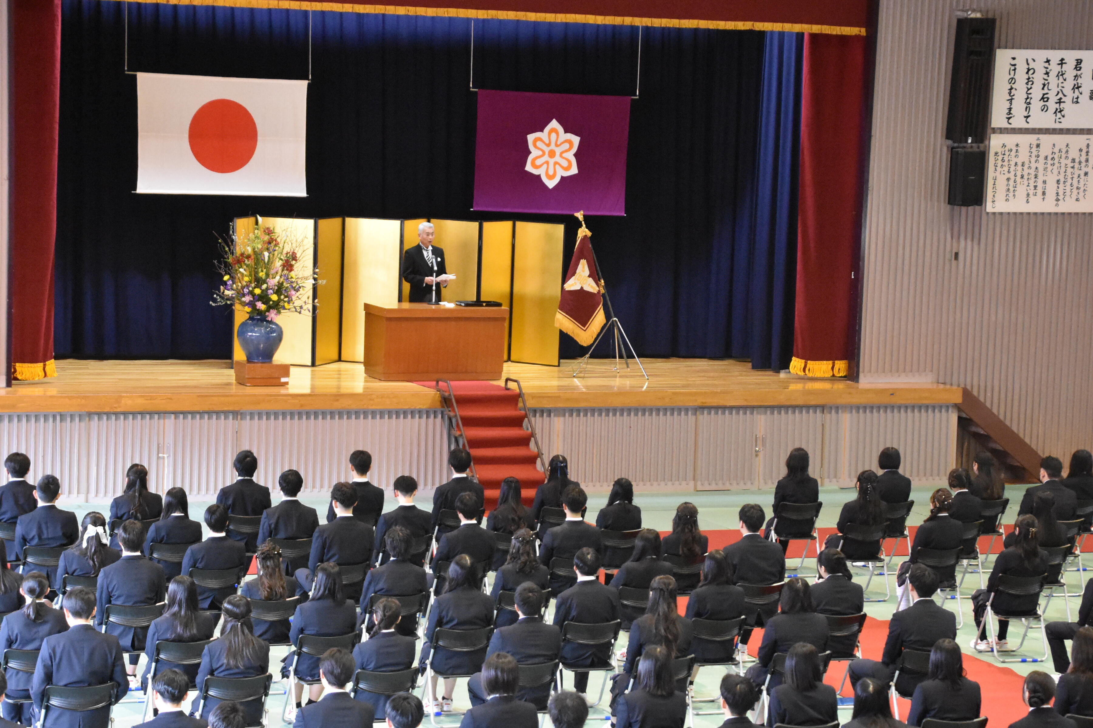 証書授与の際、ひとりひとり名前が読み上げられるたび、卒業生の「はい」という大きくも穏やかな声が響きます。卒業の歌では、保護者席へ向かって優しい歌声が館内に響き渡り、歌唱後は参列者から温かい拍手が送られました。