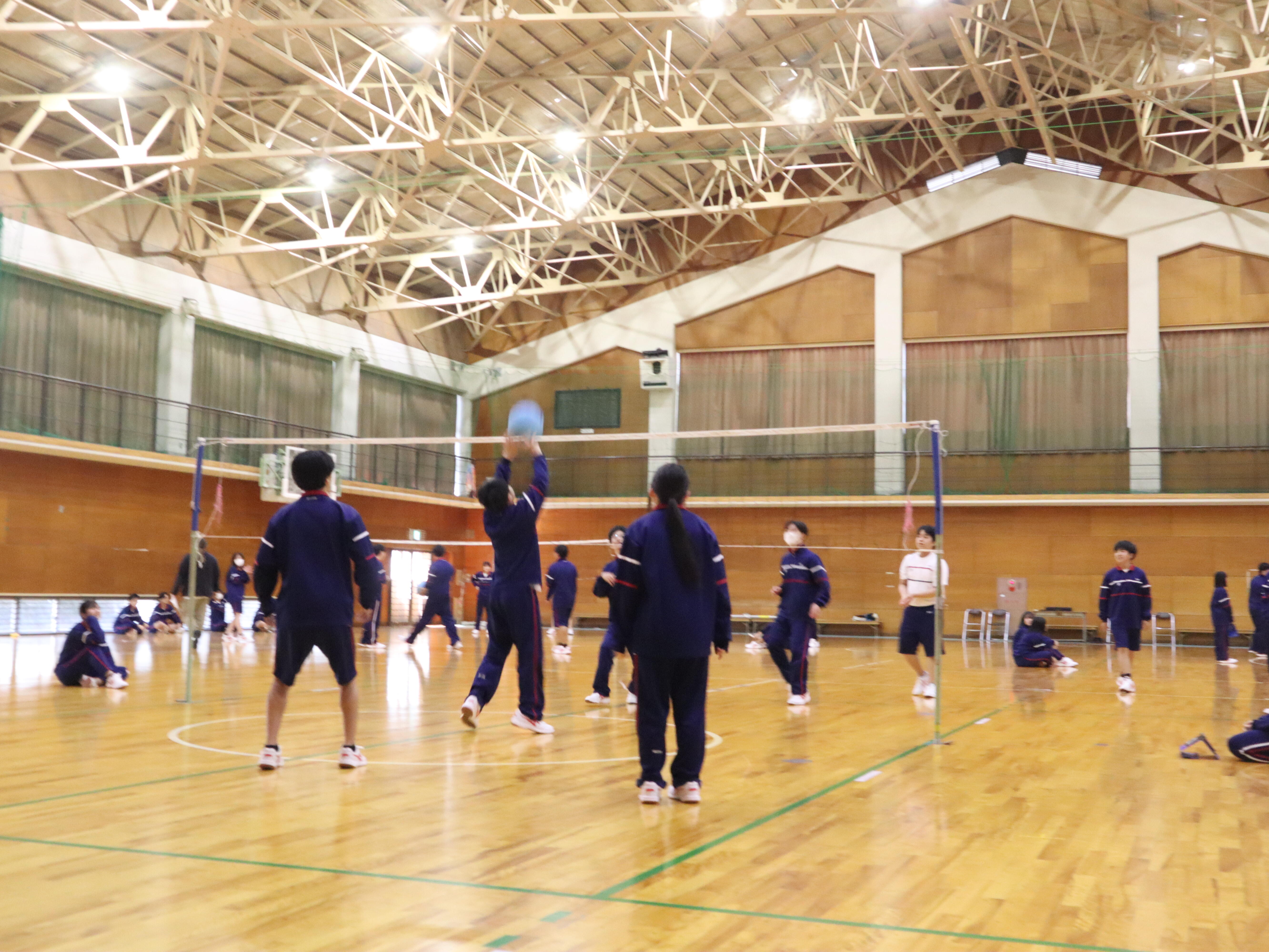 午後はソフトバレーボール大会。3人チームとなり、5分間ゲームを行います。遠くにはじいたボールを必死に追いかけたり、プレイしている友人をコートの外から応援したり、楽しい時間を過ごせている様子が見られました。
