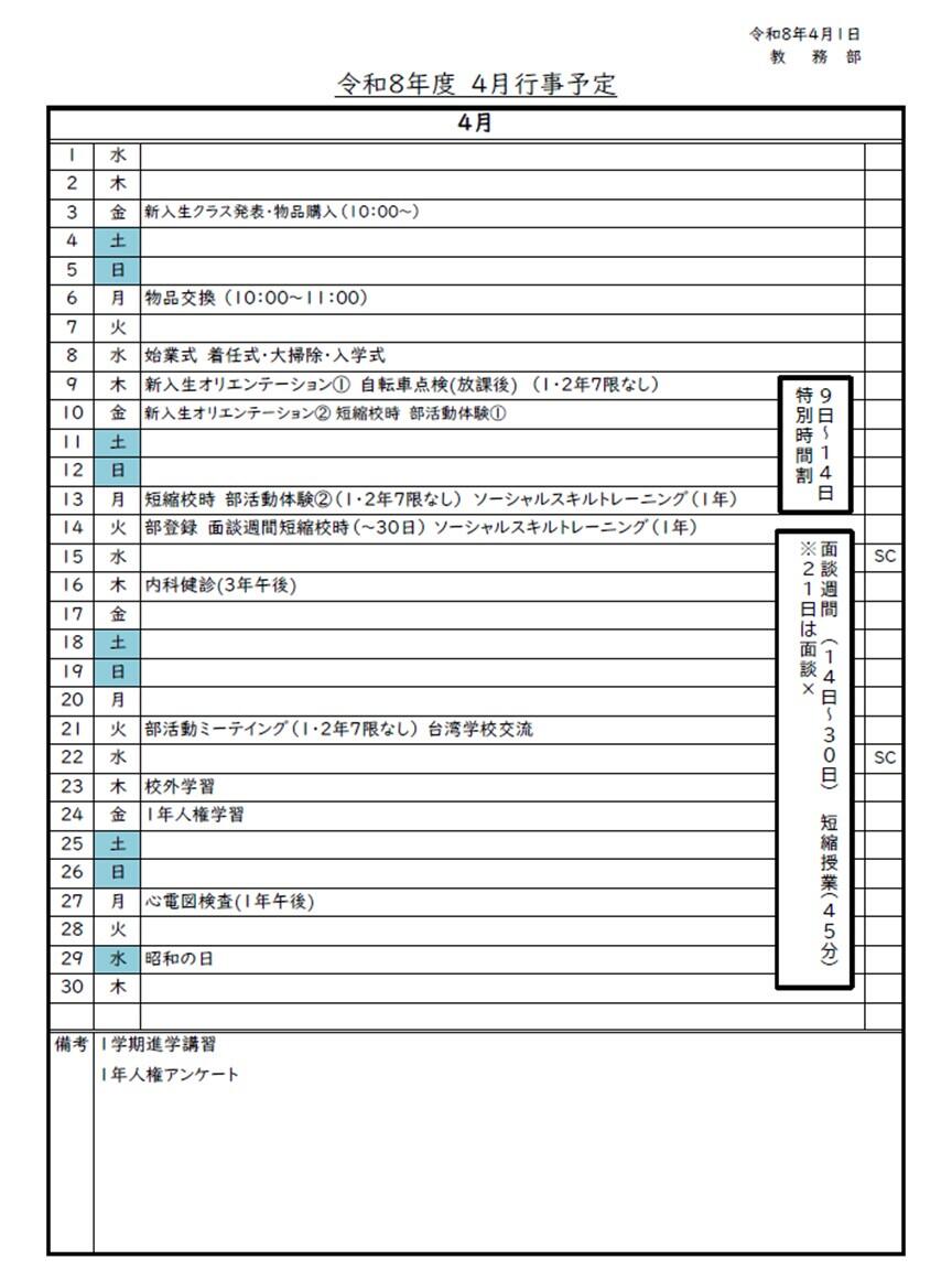 ※PDFを開くには下記「4月の行事予定」をクリックして下さい。