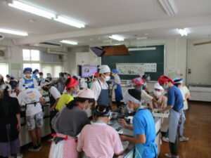 9月25日(木)、大阪ガスの方に来ていただき、健康食育プログラム「〇〇〇しいみそ汁」を活用した出前授業を実施しました。子どもたちが健康的な食生活について楽しく体感しながら学ぶことを重視し、なぞ解きと調理実習を組み合わせた授業でした。子どもたちはおいしく栄養バランスのとれたみそ汁の食材のヒントが隠された「〇〇〇しいみそ汁」についてなぞ解きをしながら学び、その後実際に「〇〇〇しいみそ汁」を作り、試食しました。今回の食育プログラムを通じて、子どもたちが健康的な食生活の大切さについて気づくきっかけになればと考えています。