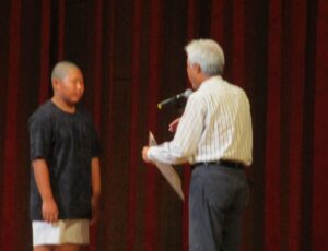 10月12日(日)、けいはんなプラザで開催された「精華町子ども祭り」において、本校児童が活躍しました。まず、令和7年度精華町青少年健全育成協議会の標語表彰式が行われ、本校6年生の里見 晋さんが「優秀賞」を受賞しました。日頃の思いや考えを言葉に込めた作品が高く評価されました。また、ウインドアンサンブルクラブは、日頃の練習の成果を発揮し、心のこもった演奏を披露しました。会場にお越しの皆様からは、温かいご声援をいただき、子どもたちにとって大きな励みとなりました。今後もさまざまな演奏会やコンテストに向けて、練習に励んでまいります。保護者の皆様、地域の皆様には、引き続き温かいご支援・ご声援を賜りますよう、よろしくお願いいたします。