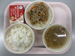 10月22日(水)の給食 今日の給食 2025.10.23 ごはん、牛乳、切り干し大根入りビビンバの具、ワンタンスープ 切干大根は大根を細く切り、天日で干して乾燥させた保存食です。太陽の光を浴びることで、甘くなります。また、骨や歯を丈夫にするカルシウムや、貧血の予防効果のある鉄、お腹の調子を整える食物繊維も含まれています。今日はビビンバに入っています。ごはんにかけて食べましょう。 Post Views: 15