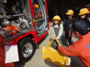 消防署見学(3年生) 3年生 2025.10.27 10月27日(月曜日)、3年生が精華町消防本部を訪問し、消防署や消防車、救急車の内部見学などを通して、防災に関する理解を深めました。消防署の内部見学では、消防士の方々から火災や災害時の対応について詳しく説明を受けました。また、消防車や救急車の内部にあるさまざまな装備を間近で見学し、消防や救急活動の大変さと工夫を学びました。今回の見学を通じて、子どもたちは防災への意識を高めるとともに、地域の安全を守る消防士の方々への感謝の気持ちを育むことができました。 Post Views: 18