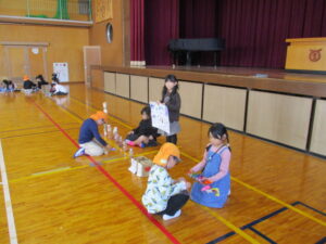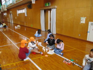 11月7日(金)、1年生が生活科の学習で準備した「おもちゃランド」に、来年度入学予定のひかりだい保育所のみなさんを招待しました。子どもたちは、これまでの学習で考えた手作りおもちゃや遊び方を工夫し、グループごとにお店を開きました。保育所のみなさんは、1年生にやさしく遊び方を教えてもらいながら、楽しく交流することができました。1年生にとっても、「どうすれば楽しんでもらえるか」を考え、説明や声かけをすることで、成長を感じる時間となりました。笑顔あふれる温かなひとときとなり、来年度の入学を心待ちにする子どもがさらに増えることを願っています。