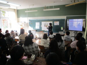 認知症キッズサポーター養成講座(5年生) 5年生 2025.12.18 12月18日(木)、精華町キャラバンメイトの皆様をお迎えし、「認知症キッズサポーター養成講座」を開催しました。講座では、認知症についての理解を深めるとともに、認知症の方だけでなく、周りのすべての人に対する優しさや思いやりの大切さについて学びました。また、自分たちが日常で行った「やさしい行動」を振り返り、交流する時間もあり、心温まるひとときとなりました。キャラバンメイトの皆様、お忙しい中ご協力いただき、誠にありがとうございました。 Post Views: 23