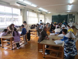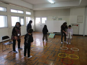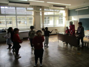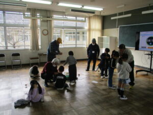 1月14日(水)、地域の皆様にお越しいただき、「昔遊び体験」を実施しました。当日は、たくさんの遊びコーナーをご準備いただき、子どもたちはグループごとに順番に回りながら、昔ながらの遊びに親しむことができました。普段の生活ではなかなか体験する機会の少ない遊びに触れ、子どもたちは目を輝かせながら挑戦し、できるようになると笑顔で喜んでいました。地域の方々からは、遊び方のコツや昔の思い出なども教えていただき、子どもたちにとって貴重な学びの時間となりました。世代を超えた交流を通して、温かい雰囲気の中で楽しい時間を過ごすことができたことは、子どもたちにとって大きな財産です。