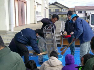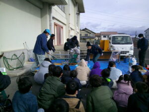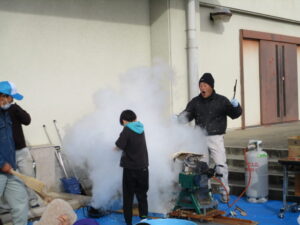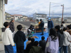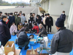 1月20日(火)、5年生が総合的な学習の時間に地域やJAの方を講師にお迎えし、ポン菓子体験を行いました。昔ながらの機械を使い、自分たちが植えて収穫体験したお米が一瞬で「ポンッ」とはじける様子を間近で見ることができました。子どもたちは大きな音と迫力に驚きながらも、興味深く学習に取り組んでいました。講師の方からは、ポン菓子づくりの仕組みや工夫、地域で受け継がれてきた知恵について、分かりやすく教えていただきました。出来たてのポン菓子を味わいながら、食べ物の大切さや地域の文化について考えることができました。今回の学習を通して、子どもたちは地域のよさを再発見し、ふるさとへの親しみと感謝の気持ちを深めることができました。