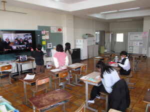 卒業生を送る会(かしのき学級) かしのき 2026.02.13 2月13日(金)、相楽地方特別支援教育研究協議会主催の「卒業生を送る会」がオンラインで開催されました。会の中では、お祝いの言葉をいただいた後、卒業生一人一人が、これからの目標や頑張りたいことについて発表しました。続いて、卒業生に向けて各校から心のこもった発表が行われました。本校の子どもたちも、発表に向けた準備などに精一杯取り組みました。オンラインでの開催ではありましたが、精華町内の仲間と交流することができ、心温まる送る会となりました。 Post Views: 37