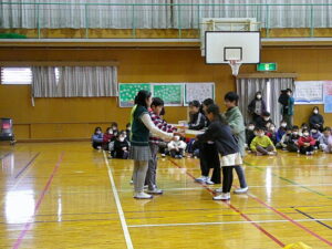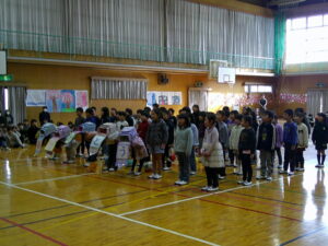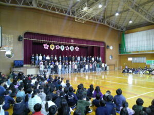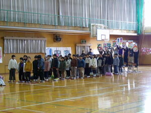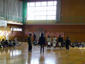2月20日(金)、体育館で「6年生を送る会」を行いました。まず、在校生が心を込めて作ったプレゼントの紹介をしました。続いて、各学年が発表を行い最後に6年生からの発表がありました。発表の間には、5年生が各学年をテーマにしたクイズをして盛り上げました。5年生は全校の中心となって準備や運営に力を尽くし、1~4年生もお世話になった6年生へ感謝の気持ちを精一杯伝えました。全校児童の思いが一つになり、心温まる素晴らしい会となりました。5年生には、最高学年として伝統を受け継ぎ、これからの学校を引っ張っていくことを期待しています。