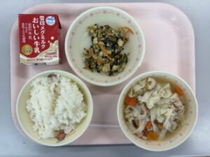 2月20日(金)の給食 今日の給食 2026.02.20 ごはん(減量)、牛乳、きしめん、こんにゃく入り白和え 今日は、精北小学校の6年生が考えた献立で、テーマは「全国の食べ物まつり」です。きしめんは、愛知県名古屋市の名物として知られる平たい形のうどんです。幅広で薄い麺は、つるっとした食感とだしの味がよく絡むのが特徴。旬の白菜やねぎなどをのせると、彩りも栄養もアップします。寒い季節にぴったりの一品です。 Post Views: 24