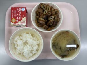 3月9日(月)の給食 今日の給食 2026.03.10 ごはん、牛乳、かつおとちくわの磯部揚げ、じゃがいものみそ汁 ちくわは、もともと細い竹の周りに魚のすり身をつけて焼いていて、竹を外した時に輪っかのような形になることから「竹輪」と呼ばれるようになりました。今日はかつおと一緒に揚げて甘辛い味付けにしているので、ごはんがすすむ一品になっています。 Post Views: 17