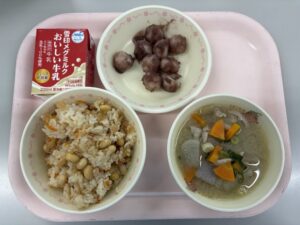 3月10日(火)の給食 今日の給食 2026.03.10 ツナ大豆ごはん、牛乳、豚汁、とってもだいすきあんこもち 今日は、食育の日献立です。今月は、ドラえもんが好きな「もち」を使った「あんこもち」です。あんこは、ゆでた小豆に砂糖を加えて煮た、日本で昔から親しまれている食品です。小豆には食物せんいやビタミンB群が多くふくまれ、体の調子をととのえる働きがあります。つぶあん・こしあん・白あんなど種類もさまざまです。伝統の味をしっかり味わってみましょう。 Post Views: 24