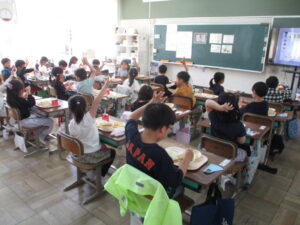 1年生「給食スタート」 1年生 2026.04.16 4月16日(木)、1年生の給食がスタートしました。初めての給食当番も頑張りました。初めての給食のメニューは、「麦ごはん、きらきらビーフカレー、フルーツポンチ、牛乳」でした。笑顔いっぱいで、おいしそうに食べている子どもたちの姿が微笑ましかったです。 Post Views: 12