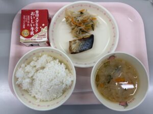 4月15日(水)の給食 今日の給食 2026.04.15 ごはん、牛乳、鯖の塩焼き、にらともやしのおひたし、大根のみそ汁 サバには、DHAという体に良い脂が含まれています。DHAは、脳や神経の働きを助け、活発に動かしてくれる働きがあり、記憶力アップの手助けをしてくれます。脳を元気に保つためにも、苦手な人は少しずつでもよいので食べるようにしましょう。 Post Views: 30