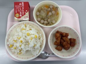 4月20日(月)の給食 6年生 2026.04.21 コーンライス、牛乳、まぐろのアングレース、いろいろ野菜のスープ 今日はカミカミ献立です。カミカミ献立の日は、献立表に歯の形をした「かむくん」がいます。この日は、かみごたえのある食材を使っているので、いつも以上によくかんで食べることを意識してみましょう。よくかむと虫歯の予防や、あごが発達して歯並びや消化が良くなるなど、良いことがたくさんあります。 Post Views: 36