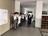 候補者とその応援者のみなさんは、朝から昇降口付近にたち、登校する生徒のみなさんにしっかりアピールしていました。
