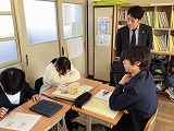 3年生では「契約」をテーマに、日常生活の身近な場面を想定して、契約について考える授業が行われました。日常の何気ない買い物の至る所に契約が存在すること、口約束でも法的には立派な契約となることなど、授業を受けていた3年生から驚きの声が上がる内容でした。