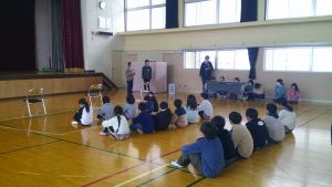 学校坂の下で見守りをしていただいている駐在さんに、坂の上から大きな声で挨拶をしたけれど振り向かれず、さらに大きな声を出したら伝わったという体験を話しました。