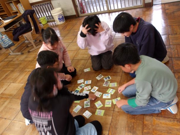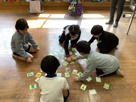 誰が作ったものか、また、どんな内容なのかを楽しみながら、かるた取りをしました。