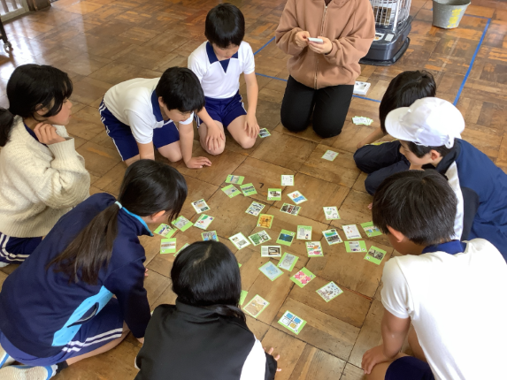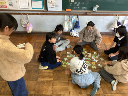 東八田のよさを読み札や絵札にし、全校でオリジナルかるたを作成しました。