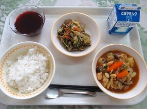給食は子どもたちの学校での楽しみの一つです。日置小学校では、宮津の食材を使い、美味しい給食を自校で作っています。ご家庭の食事の参考にもどうぞ。