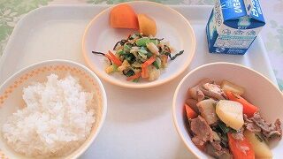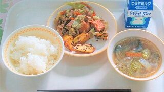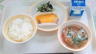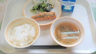ごはん、ツバスの紅葉焼き、のりのりはくさい、さつまいものみそ汁、牛乳