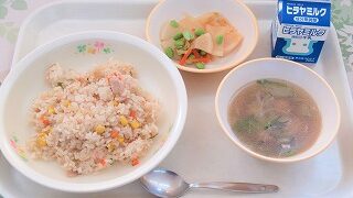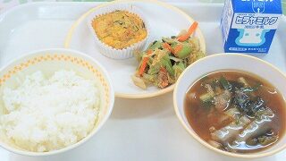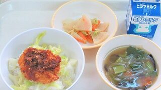 味噌カツ丼【はまなす学級リクエスト】、大根のナムル、中華スープ、牛乳