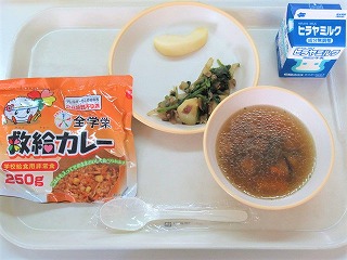 9月30日(火)の給食 給食室より Twitter Facebook はてブ Pocket LINE コピー 2025.09.30 【防災給食】救給(きゅうきゅう)カレー、ジャーマンポテト、豆腐のスープ、リンゴ、牛乳 Post Views: 9
