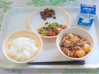 11月5日(水)の給食 給食室より Twitter Facebook はてブ Pocket LINE コピー 2025.11.05 【読書週間「お月見セブン」】ごはん、元気肉じゃが、厚揚げとキャベツのオイスター炒め物、ココア豆(十三夜・豆名月)、牛乳 Post Views: 5