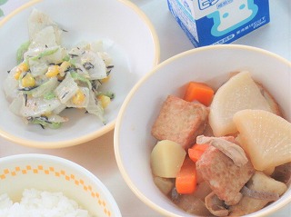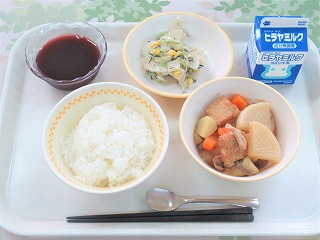11月25日(火)の給食 給食室より Twitter Facebook はてブ Pocket LINE コピー 2025.11.25 ごはん、おでん風煮、ひじきのごまサラダ、ぶどうゼリー、牛乳 Post Views: 12