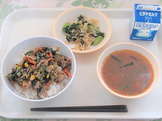 11月28日(金)の給食【韓国料理を味わおう!】 給食室より Twitter Facebook はてブ Pocket LINE コピー 2025.11.28 ビビンバ丼、もやしのナムル、カムジャタン風スープ、牛乳 Post Views: 43
