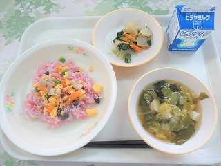 1/14(水) の給食【おせちを味わう②】 給食室より Twitter Facebook はてブ Pocket LINE コピー 2026.01.14 【おせち給食】黒豆寿司、小松菜のこんぶ和え、豆腐のすまし汁、牛乳★黒豆寿司は黒豆は「まめに働く」「健康でまめに暮らす」という願いが込められています。小松菜は「緑の野菜で健康を願う」、昆布は「よろこぶ」に通じる縁起物です。 Post Views: 28
