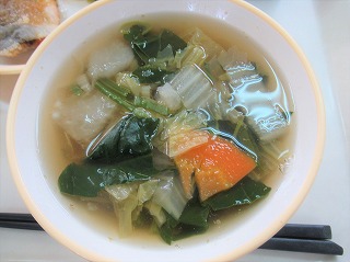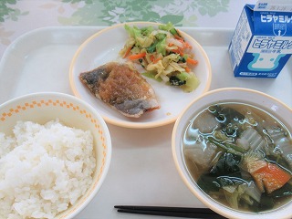 ごはん、ツバスのみぞれがけ、キャベツの甘酢和え、はくさいのすまし汁、牛乳
