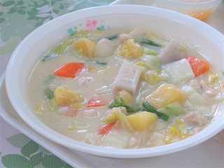 ★クリームシチューは、牛乳や生クリームを使って作られる日本生まれの洋食メニューです。もともとはフランス料理の「ホワイトソース」がベースになっていて、日本では給食や家庭料理として親しまれるようになりました。白菜や鶏肉は、シチューのクリーミーな味わいとよく合い、栄養バランスもバッチリ。寒い季節に体を温めてくれる、人気の高い料理です!
