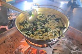 築170年を超える茅葺き民家にて、実際に火を焚く体験を通じ、丹後の民俗文化や歴史を体感しました。子どもたちは実際に調理したごはんやみそ汁をいただきました。かまどで炊くごはんが美味しくおかわりする子がたくさんいました!