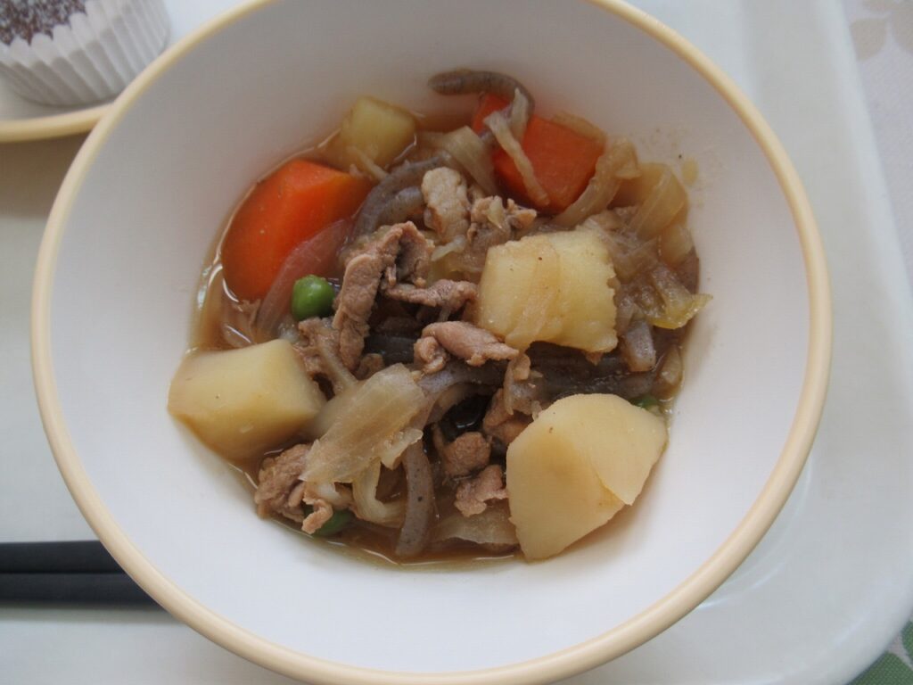 肉じゃがは、ビーフシチューの日本版として誕生したと言われています。明治時代、海軍の人が「ビーフシチューを作れ」と命じました。でも、材料がそろわず、しょうゆと砂糖で代わりに作りました。それがとてもおいしかったために、一つの料理として広まっていったそうです。