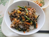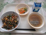 ビビンバ丼、中華サラダ、春雨スープ、牛乳