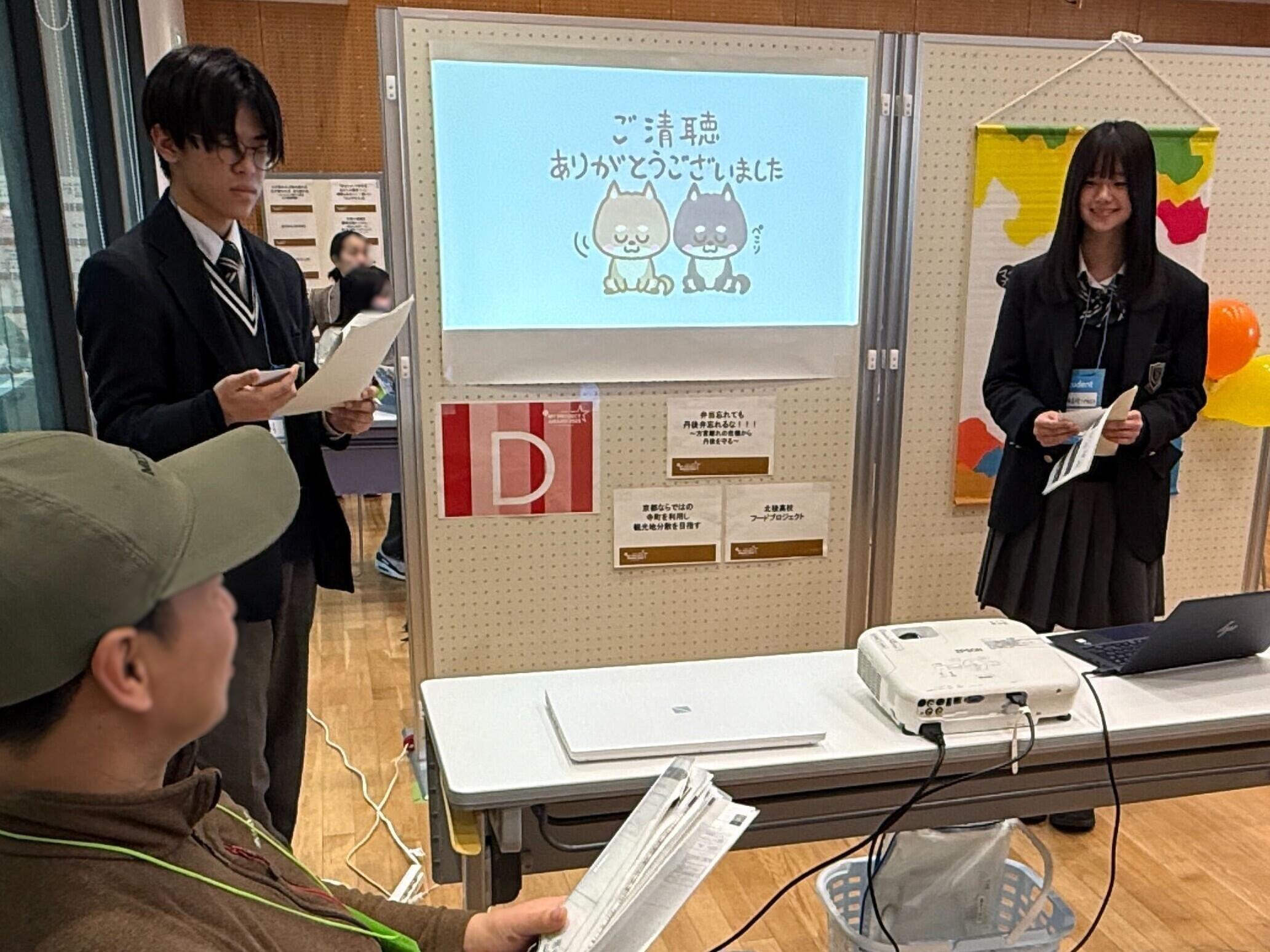1月10日(土)、市民交流プラザふくちやまにて開催された「マイプロジェクト京都サミット」に、本校からは2年生の3プロジェクトが参加しました。探究活動の成果を堂々と発表し、参加者や専門家の皆さまから多くの貴重なアドバイスをいただき、さらなる成長につながる刺激的な1日となりました。