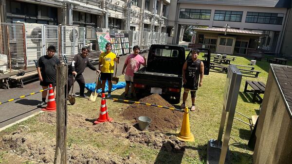本日昼の時間に北稜スクエア(中庭)に土を運んでいる生徒がいました。何ができるでしょうか。新学期が楽しみです!!