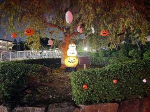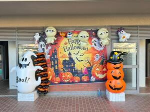毎年恒例のハロウィン装飾が完成しました!約2週間という短い期間ですが、皆様に季節感あふれる学校生活を送っていただけるよう、文化委員一同、心を込めて飾り付けをしました。校門桜にあるジャック・オー・ランタンは、夜20時頃まで点灯しています。ぜひご覧ください。